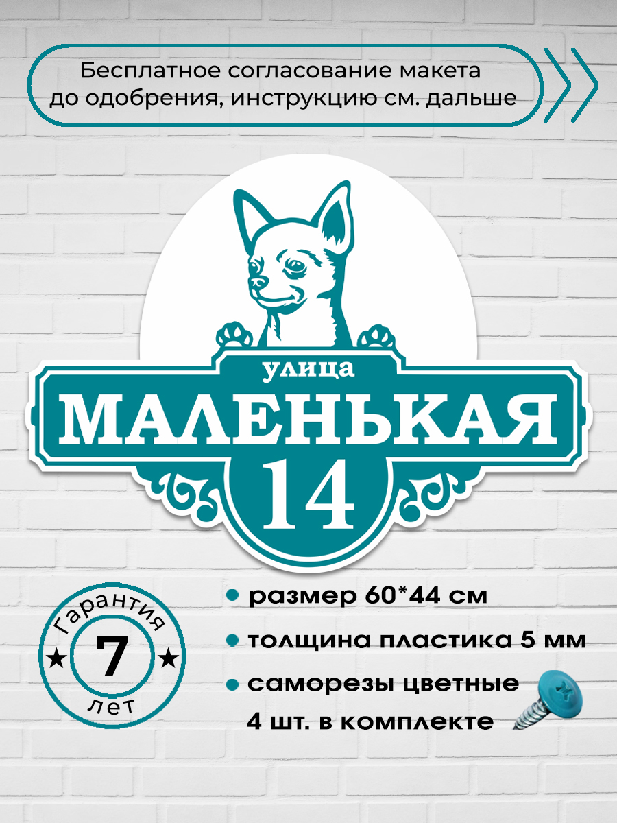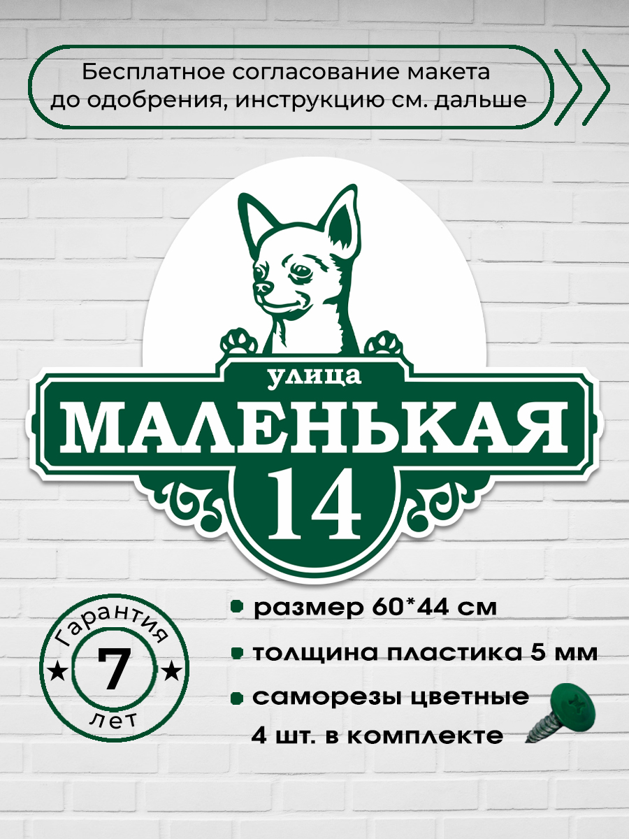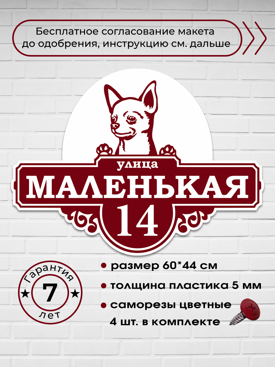 Адресная табличка на дом с собакой чихуахуа, 60х44 см.