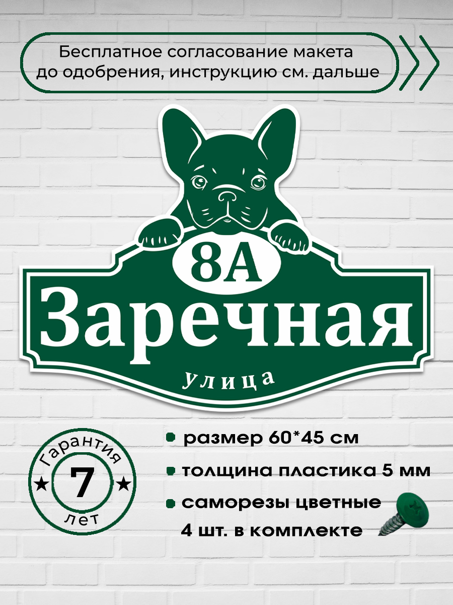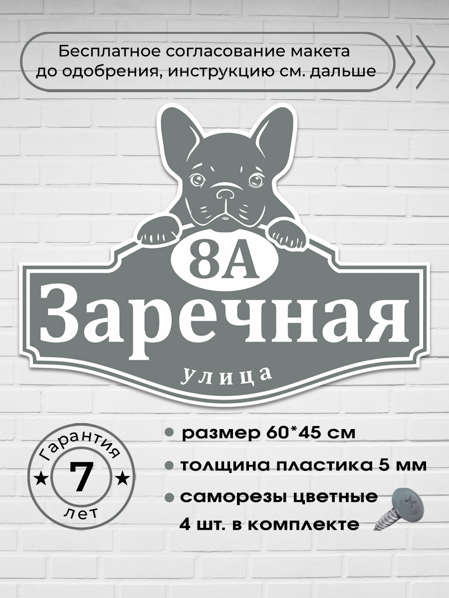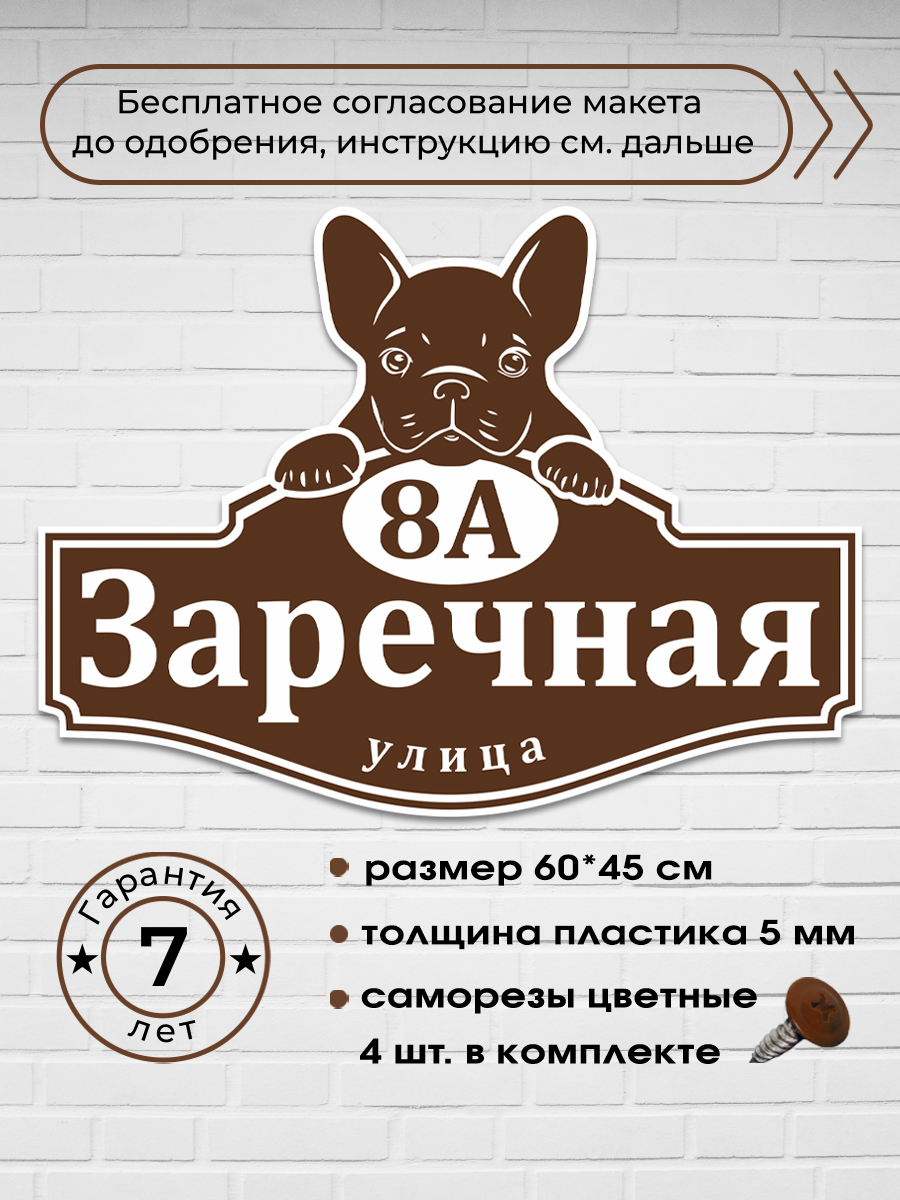 Адресная табличка с французским бульдогом, 60х45 см.