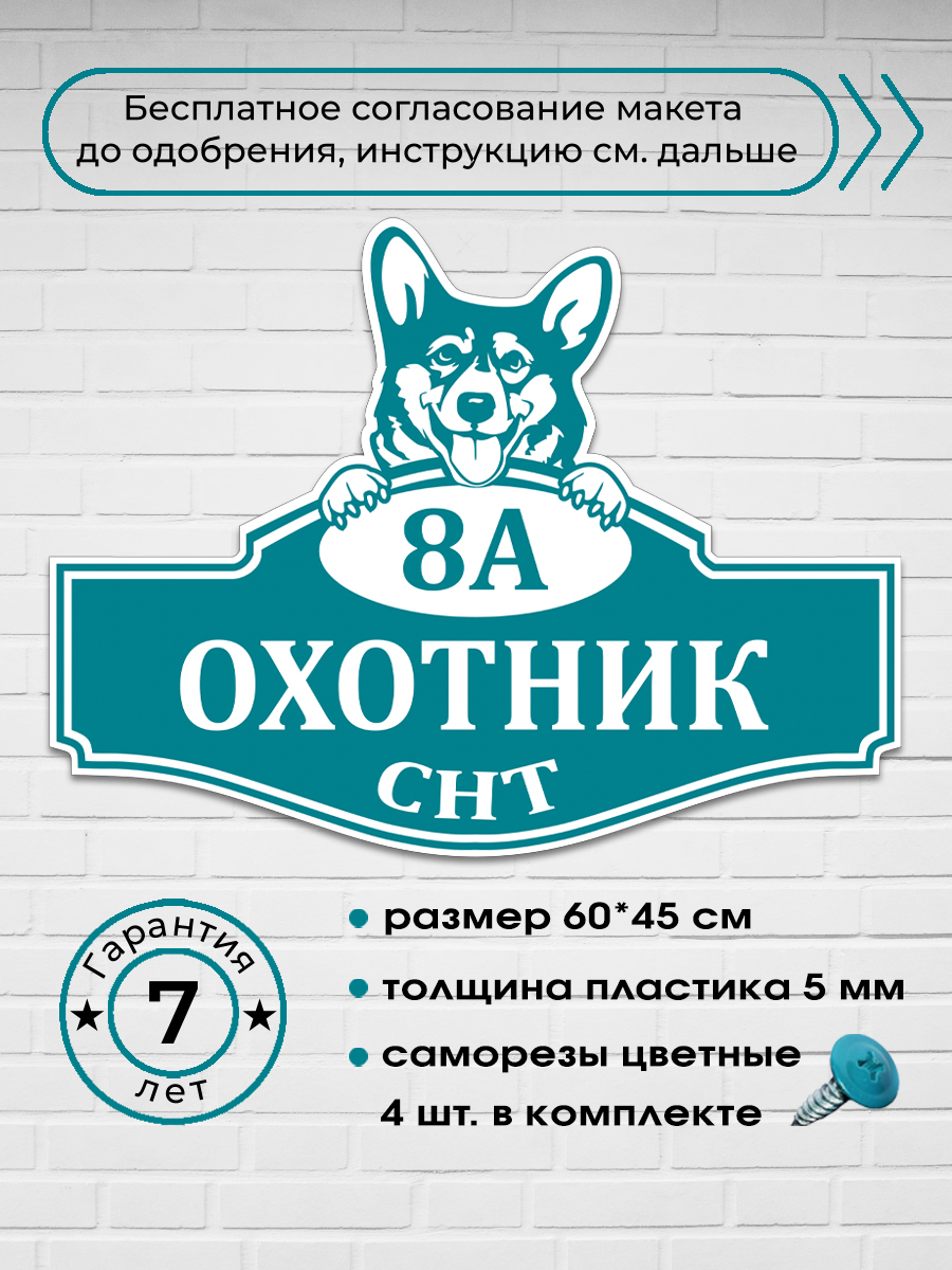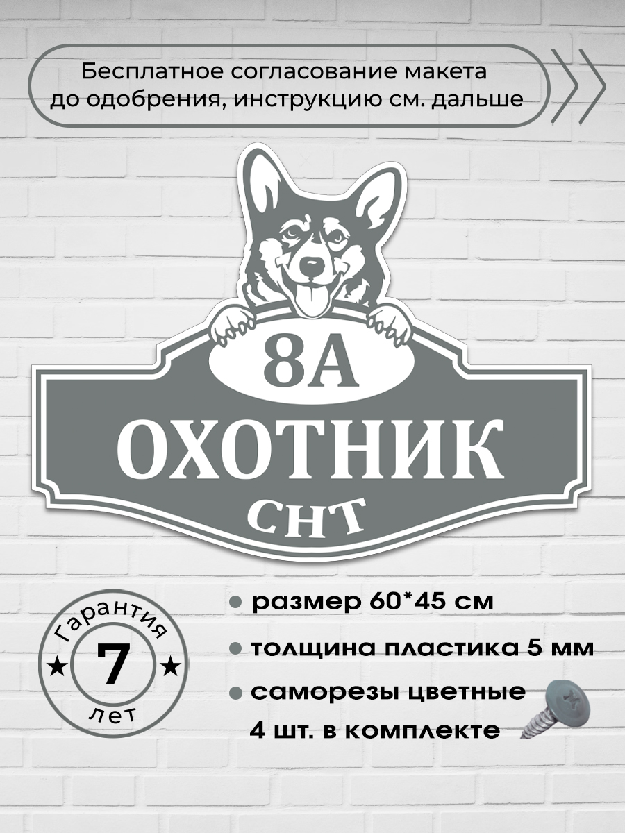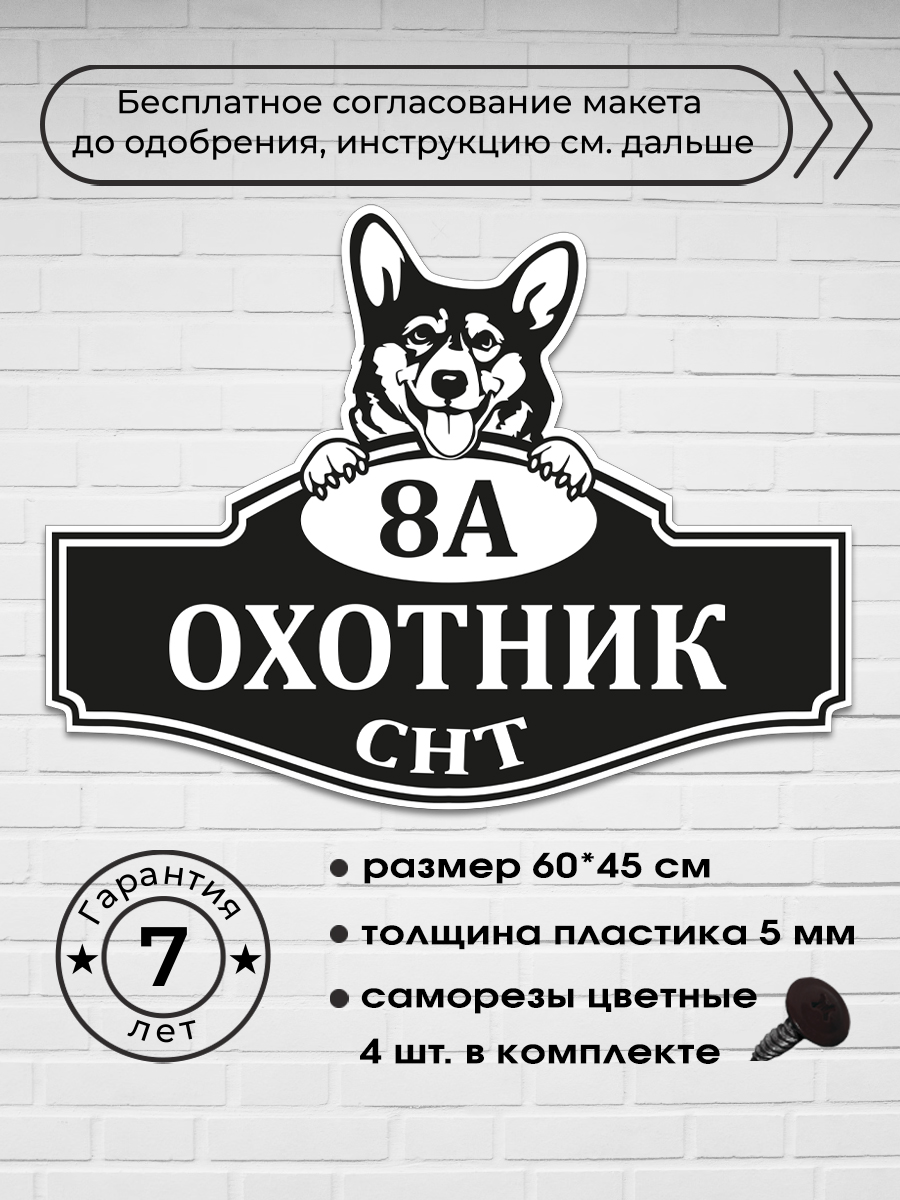 Адресная табличка с собакой Корги, 60х45 см.
