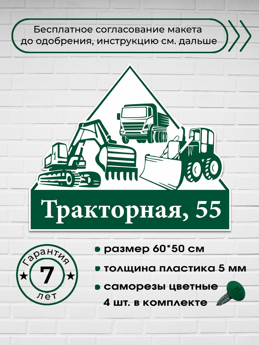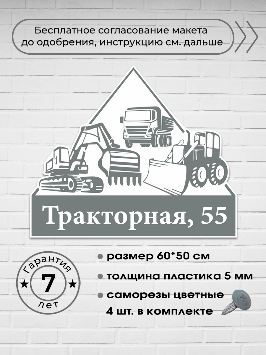 Адресная табличка со строительной техникой, 60х50 см.