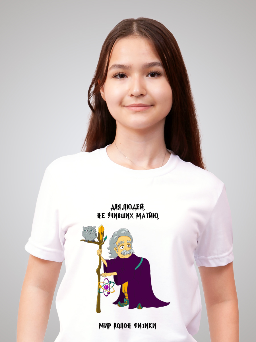 Гипоаллергенный состав не вызывает раздражений даже на чувствительной коже. А плотность ткани обеспечивает комфорт и долговечность изделия. Состав изделия - 50% хлопок и 50% эластана. Футболка подойдёт для любого случая: прогулки, спорта, отдыха дома или на природе. Лицевая сторона украшена авторским принтом с надписью: "Для людей, не учивших магию, мир полон физики", который оценит ценитель юмора и любитель мемов. Он нанесён инновационным способом, что гарантирует яркость и долговечность изображения. Принт тактильно никак не ощущается на ткани, не трескается и сохраняет насыщенность даже после многочисленных стирок. Отличный подарок на 14 февраля, 23 февраля или 8 марта!