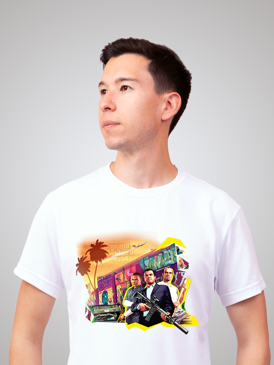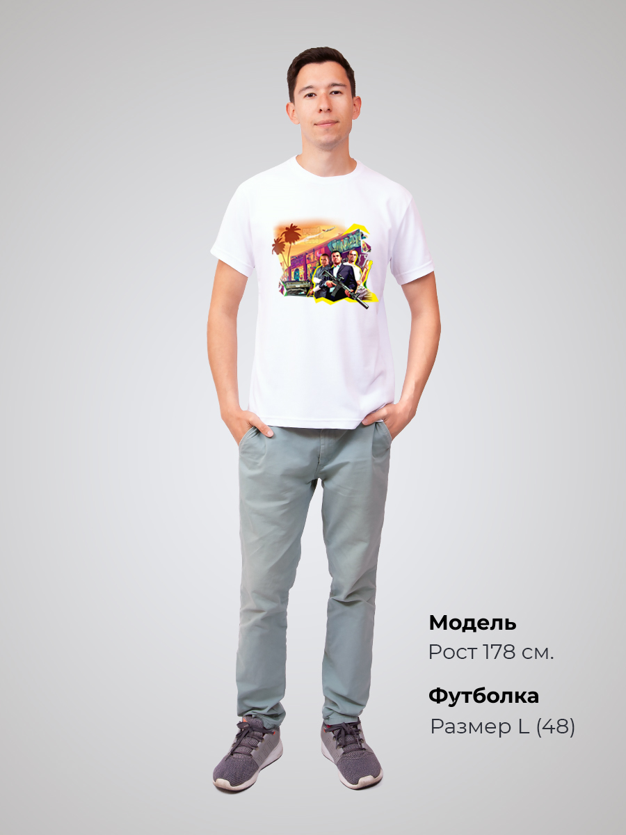Гипоаллергенный состав не вызывает раздражений даже на чувствительной коже. А плотность ткани обеспечивает комфорт и долговечность изделия. Состав изделия - 50% хлопок и 50% эластана. Футболка подойдёт для любого случая: прогулки, спорта, отдыха дома или на природе. Лицевая сторона украшена авторским принтом, который оценит фанат компьютерной игры "ГТА". Он нанесён инновационным способом, что гарантирует яркость и долговечность изображения. Принт тактильно никак не ощущается на ткани, не трескается и сохраняет насыщенность даже после многочисленных стирок. Отличный подарок на 14 февраля, 23 февраля или 8 марта, а также геймерам, киберспортсменам и просто любителям игр в жанре action-adventure!