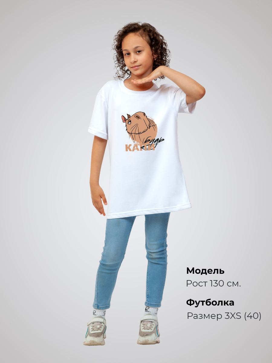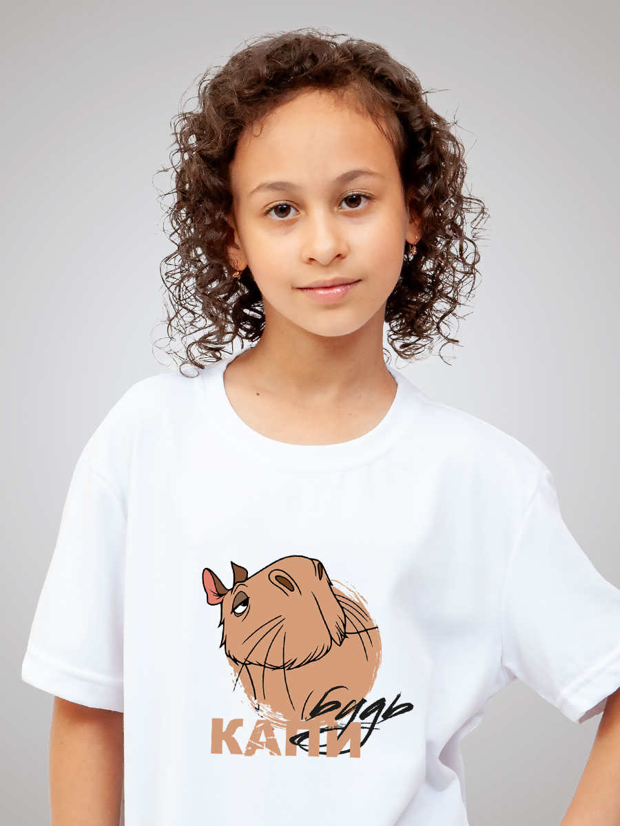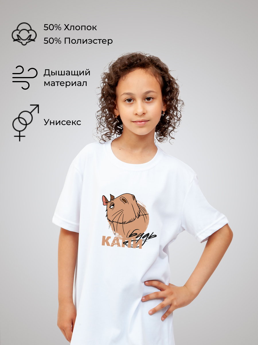 Базовое классическое изделие для мальчиков и девочек изготовлено из дышащего материала высокого качества российского производства, что делает его подходящим для любого сезона. Гипоаллергенный состав не вызывает раздражений даже на чувствительной коже. А плотность ткани обеспечивают комфорт и долговечность изделия. Состав изделия - 50% хлопок и 50% эластана. Футболка подойдёт для любого случая: прогулки, спорта, отдыха дома или на природе. Лицевая сторона украшена авторским принтом «Капибара» - животным, ставшим популярным мемом. Он нанесён инновационным способом, что гарантирует яркость и долговечность изображения. Принт тактильно никак не ощущается на ткани, не трескается и сохраняет насыщенность даже после многочисленных стирок. Отличный подарок любителю милых зверьков!