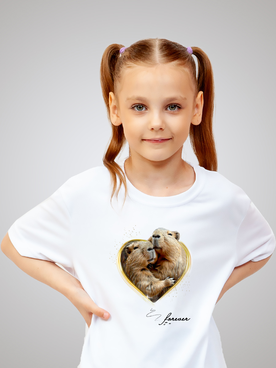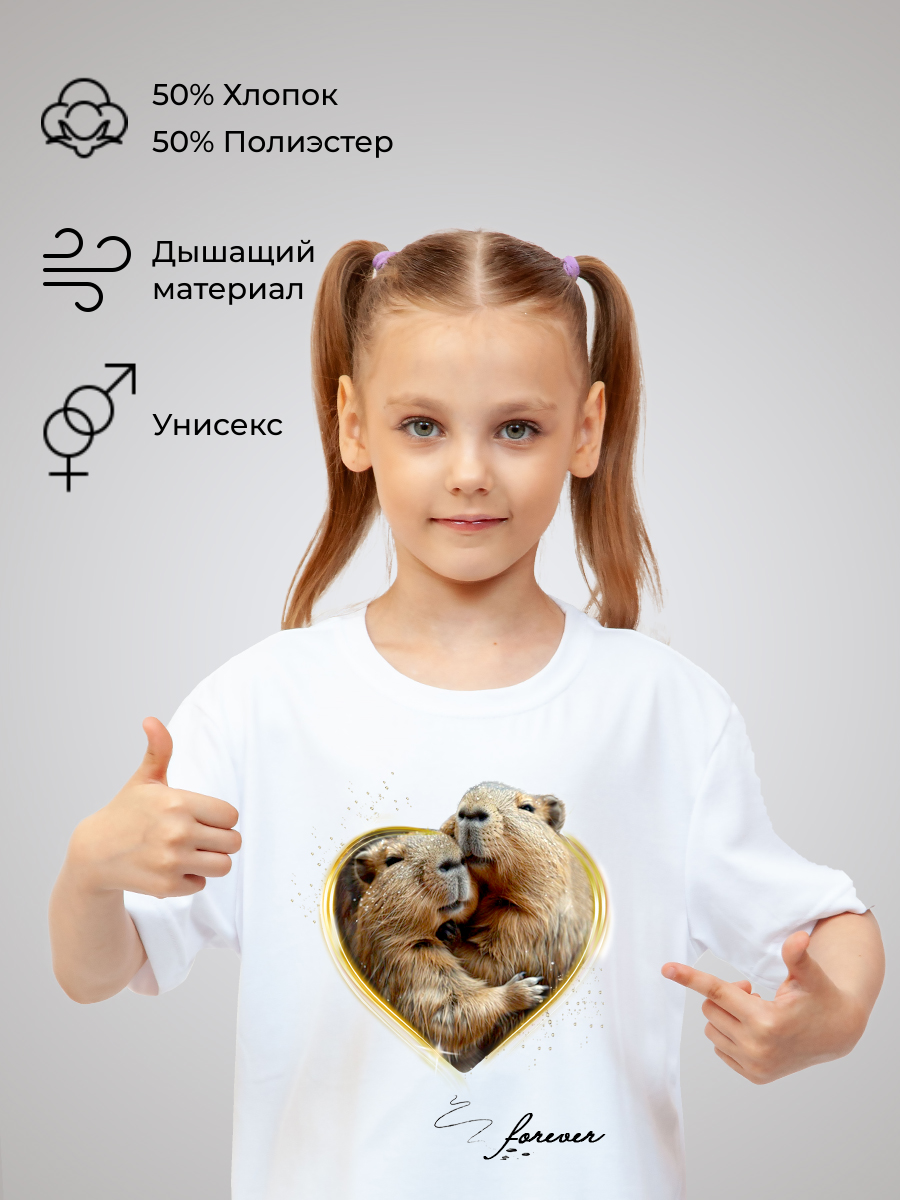 Базовое классическое изделие для мальчиков и девочек изготовлено из дышащего материала высокого качества российского производства, что делает его подходящим для любого сезона. Гипоаллергенный состав не вызывает раздражений даже на чувствительной коже. А плотность ткани обеспечивают комфорт и долговечность изделия. Состав изделия - 50% хлопок и 50% эластана. Футболка подойдёт для любого случая: прогулки, спорта, отдыха дома или на природе. Лицевая сторона украшена авторским принтом «Капибара» - животным, ставшим популярным мемом. Он нанесён инновационным способом, что гарантирует яркость и долговечность изображения. Принт тактильно никак не ощущается на ткани, не трескается и сохраняет насыщенность даже после многочисленных стирок.