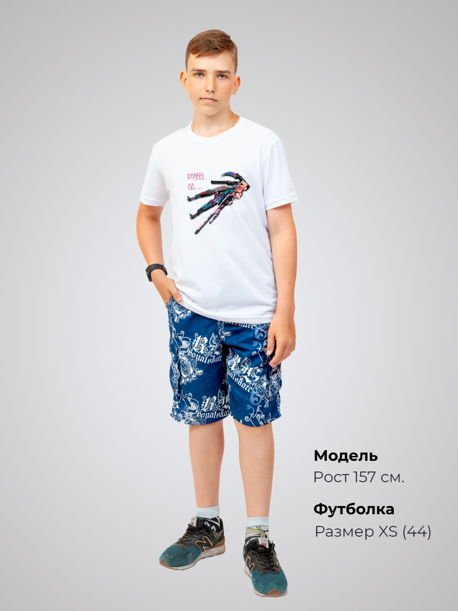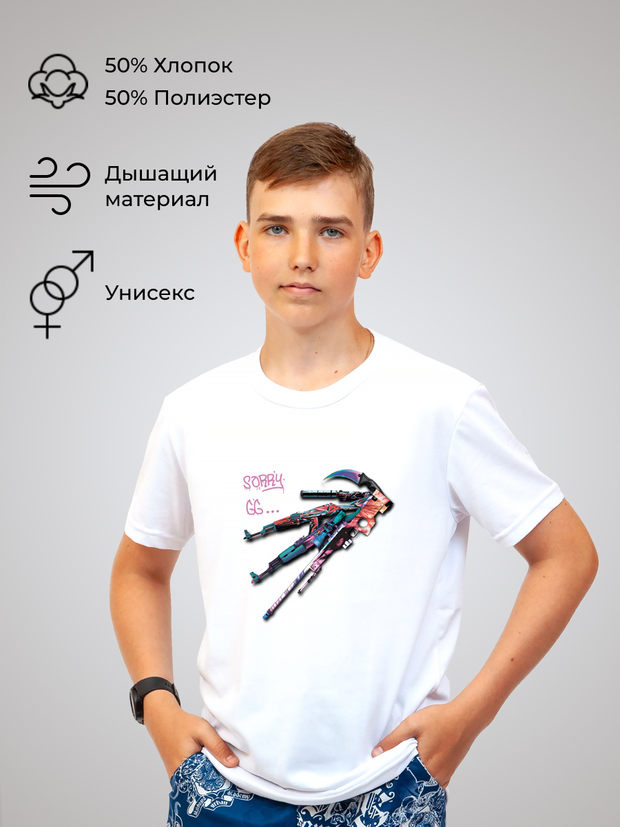 Базовое классическое изделие для мальчиков и девочек изготовлено из дышащего материала высокого качества российского производства, что делает его подходящим для любого сезона. Гипоаллергенный состав не вызывает раздражений даже на чувствительной коже. А плотность ткани обеспечивают комфорт и долговечность изделия. Состав изделия - 50% хлопок и 50% эластана. Футболка подойдёт для любого случая: прогулки, спорта, отдыха дома или на природе. Лицевая сторона украшена авторским принтом «Counter strike» - неустаревающей компьютерной игрой. Он нанесён инновационным способом, что гарантирует яркость и долговечность изображения. Принт тактильно никак не ощущается на ткани, не трескается и сохраняет насыщенность даже после многочисленных стирок.