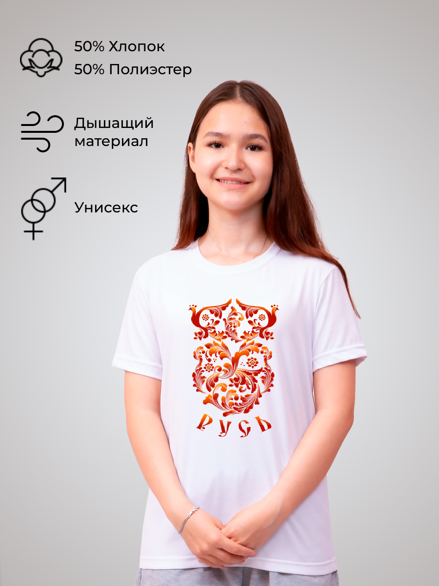 Базовое классическое изделие для мальчиков и девочек изготовлено из дышащего материала высокого качества российского производства, что делает его подходящим для любого сезона. Гипоаллергенный состав не вызывает раздражений даже на чувствительной коже. А плотность ткани обеспечивают комфорт и долговечность изделия. Состав изделия - 50% хлопок и 50% эластана. Футболка подойдёт для любого случая: прогулки, спорта, отдыха дома или на природе. Лицевая сторона украшена авторским принтом с надписью "Русь". Он нанесён инновационным способом, что гарантирует яркость и долговечность изображения. Принт тактильно никак не ощущается на ткани, не трескается и сохраняет насыщенность даже после многочисленных стирок. Отличный подарок туристам и просто патриотам нашей страны!
