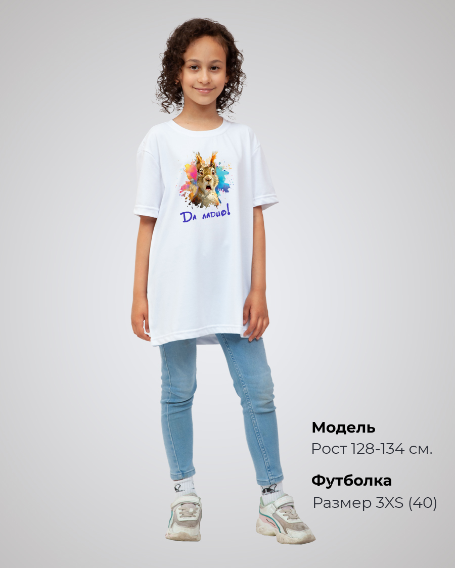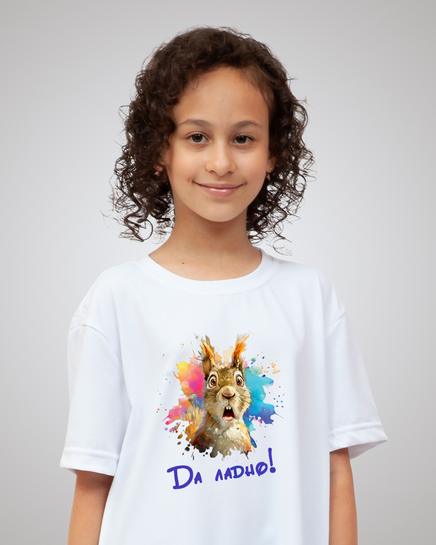 Базовое классическое изделие для мальчиков и девочек изготовлено из дышащего материала высокого качества российского производства, что делает его подходящим для любого сезона. Гипоаллергенный состав не вызывает раздражений даже на чувствительной коже. А плотность ткани обеспечивают комфорт и долговечность изделия. Состав изделия - 50% хлопок и 50% эластана. Футболка подойдёт для любого случая: прогулки, спорта, отдыха дома или на природе. Лицевая сторона украшена авторским принтом с белкой «Да ладно», ставшим популярным мемом. Он нанесён инновационным способом, что гарантирует яркость и долговечность изображения. Принт тактильно никак не ощущается на ткани, не трескается и сохраняет насыщенность даже после многочисленных стирок. Отличный подарок любителю милых зверьков, мемов и приколов!