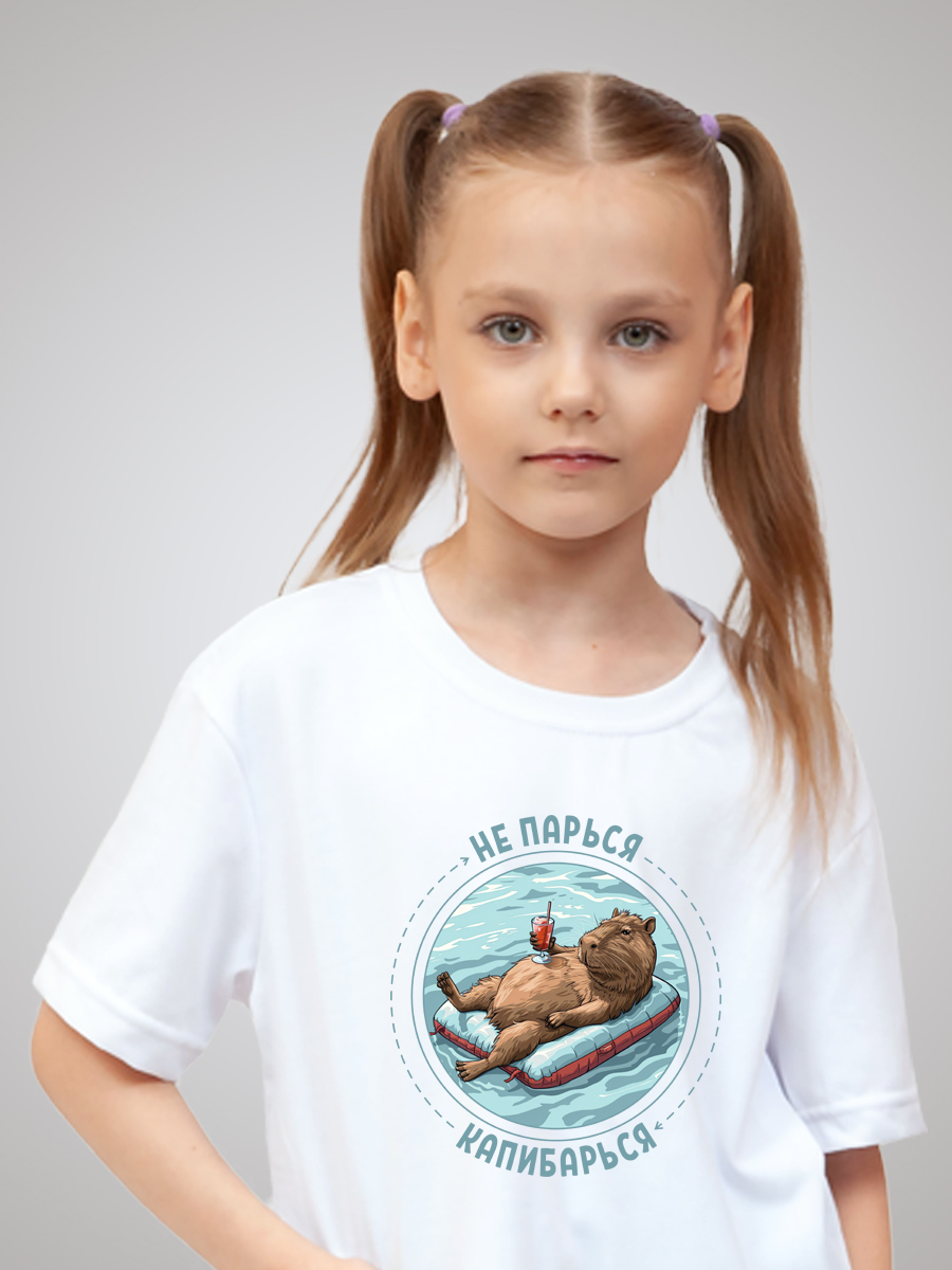 Базовое классическое изделие для мальчиков и девочек изготовлено из дышащего материала высокого качества российского производства, что делает его подходящим для любого сезона. Гипоаллергенный состав не вызывает раздражений даже на чувствительной коже. А плотность ткани обеспечивают комфорт и долговечность изделия. Состав изделия - 50% хлопок и 50% эластана. Футболка подойдёт для любого случая: прогулки, спорта, отдыха дома или на природе. Лицевая сторона украшена авторским принтом «Капибара» - животным, ставшим популярным мемом. Он нанесён инновационным способом, что гарантирует яркость и долговечность изображения. Принт тактильно никак не ощущается на ткани, не трескается и сохраняет насыщенность даже после многочисленных стирок.