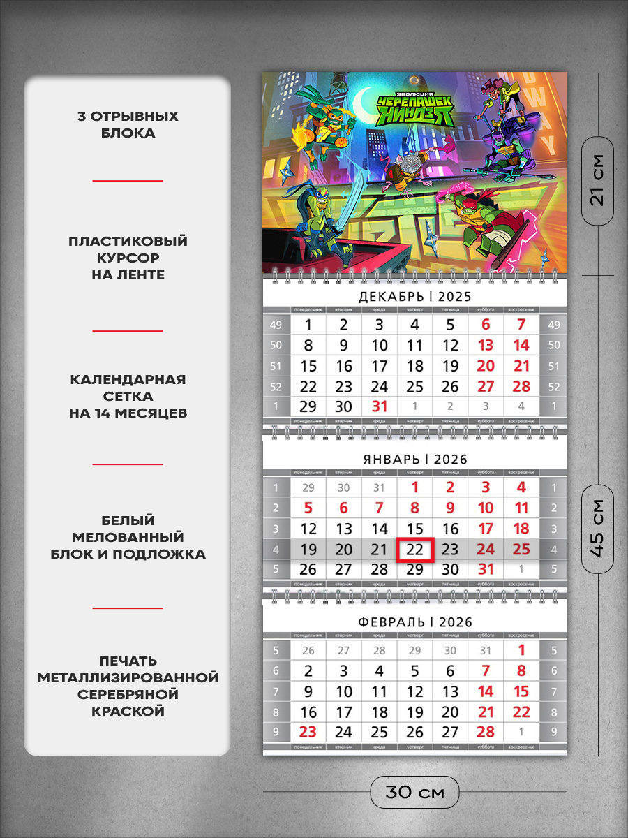 Настенный квартальный стереокалендарь c 3D-эффектом "Черепашки Ниндзя"
