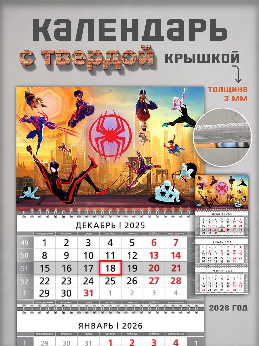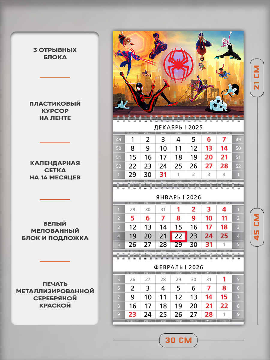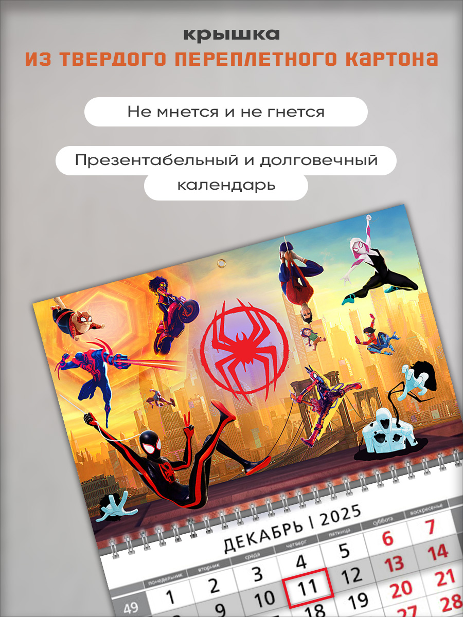На этом изделии изображены персонажи мультфильма Spider-Man. Это отличный подарок ребенку, с помощью которого он сможет отслеживать важные и ответственные события.