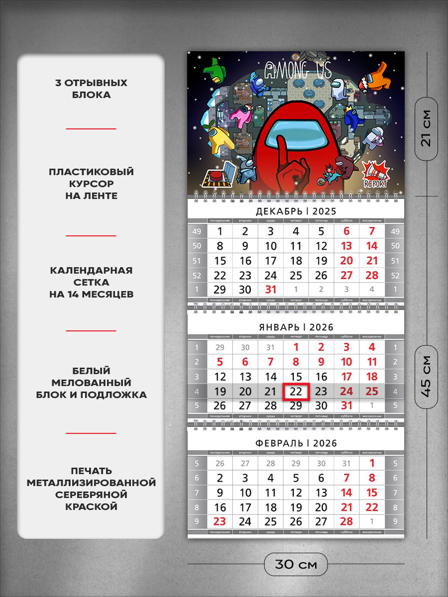 На этом изделии изображены персонажи компьютерной игры Амонг Ас, популярные среди геймеров. Это отличный подарок ребенку, с помощью которого он сможет отслеживать важные и ответственные события.