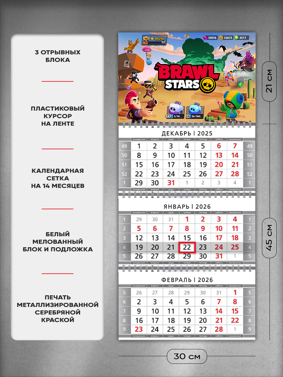 На этом изделии изображены персонажи компьютерной игры Бравл Старс, популярные среди геймеров. Это отличный подарок ребенку, с помощью которого он сможет отслеживать важные и ответственные события.