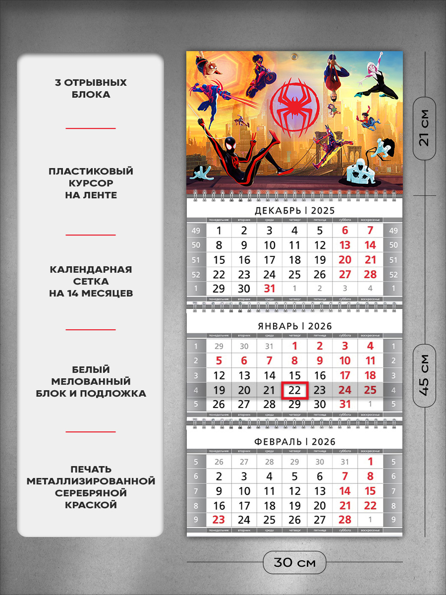 На этом изделии изображены персонажи мультфильма Spider-Man. Это отличный подарок ребенку, с помощью которого он сможет отслеживать важные и ответственные события.
