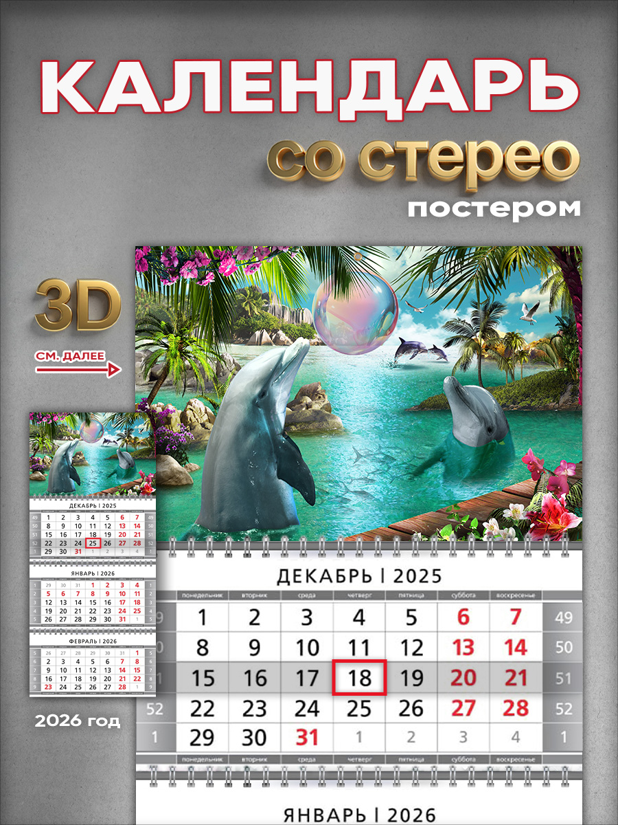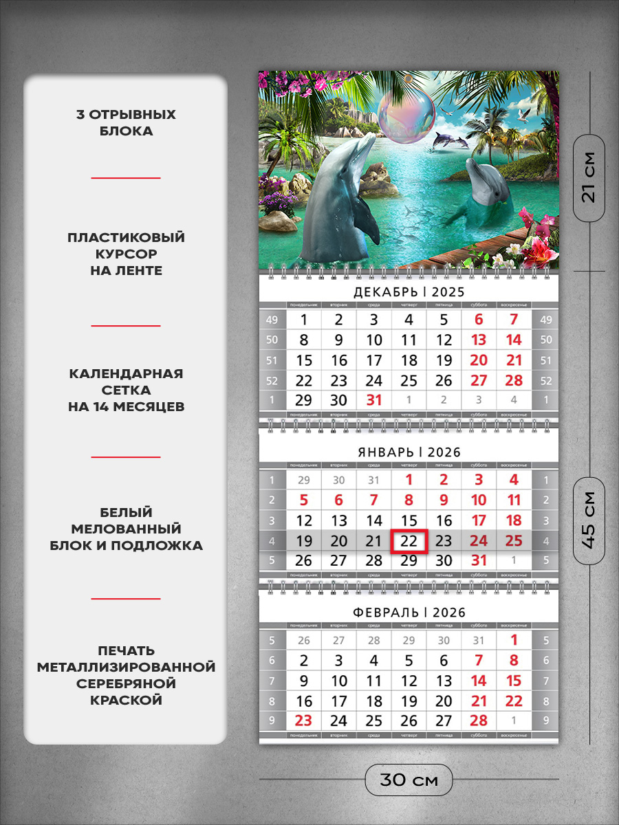На этом изделии изображены дельфины, играющие в искристой воде, на фоне тропического пейзажа. Это отличный подарок и взрослому, и ребенку, с помощью которого он сможет отслеживать важные и ответственные события.