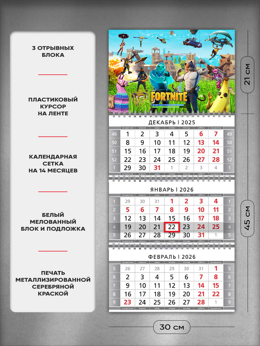 На этом изделии изображены персонажи компьютерной игры "Фортнайт", популярные среди геймеров. Это отличный подарок ребенку, с помощью которого он сможет отслеживать важные и ответственные события.
