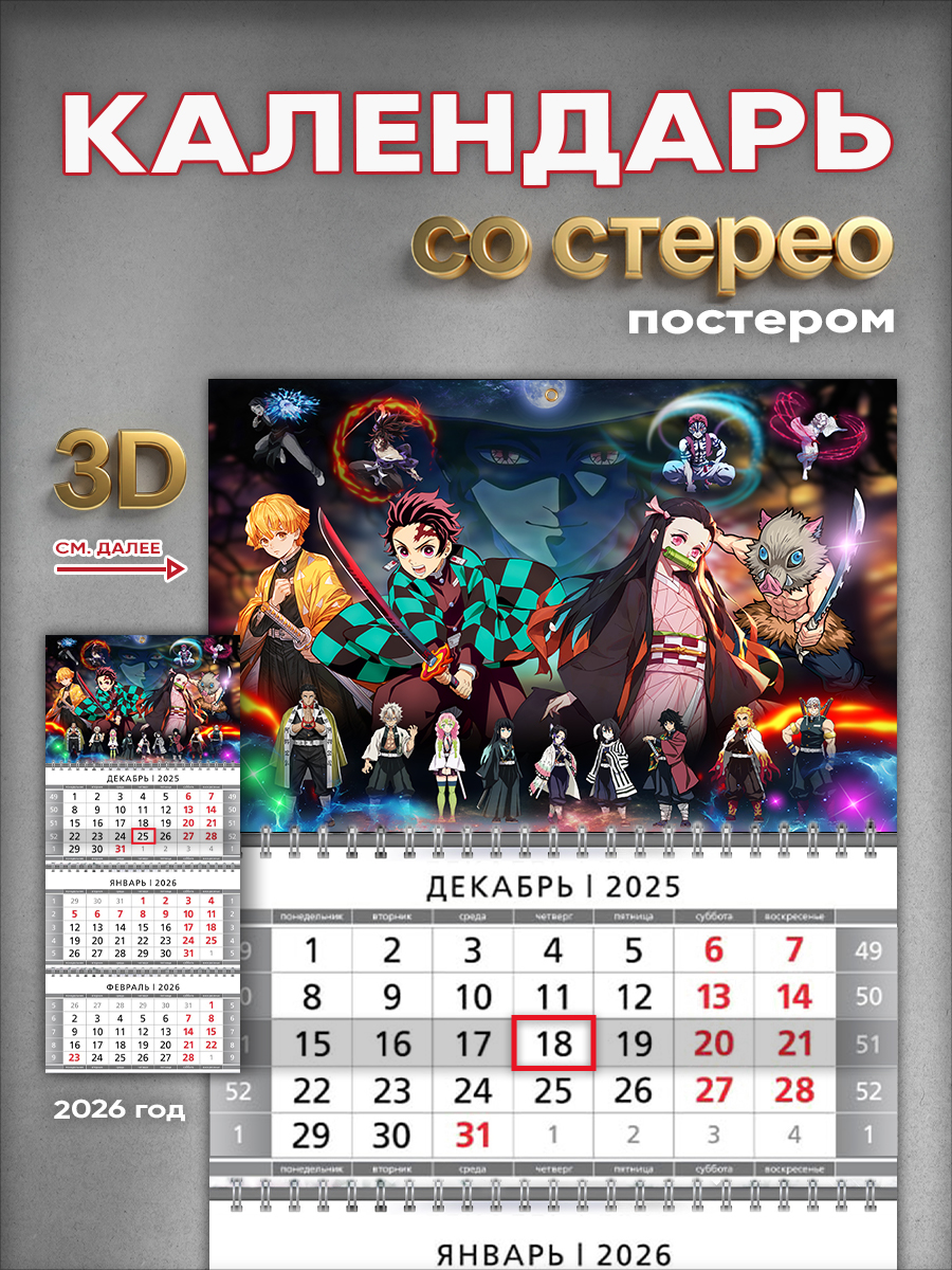 На этом изделии изображены персонажи аниме Demon Slayer: Танджиро Камадо, Незуко Камадо, Мудзан Кибуцуджи, Зеницу Агацума, Иноске Хашибира, Гютаро и Даки. Это отличный подарок ребенку, с помощью которого он сможет отслеживать важные и ответственные события.
