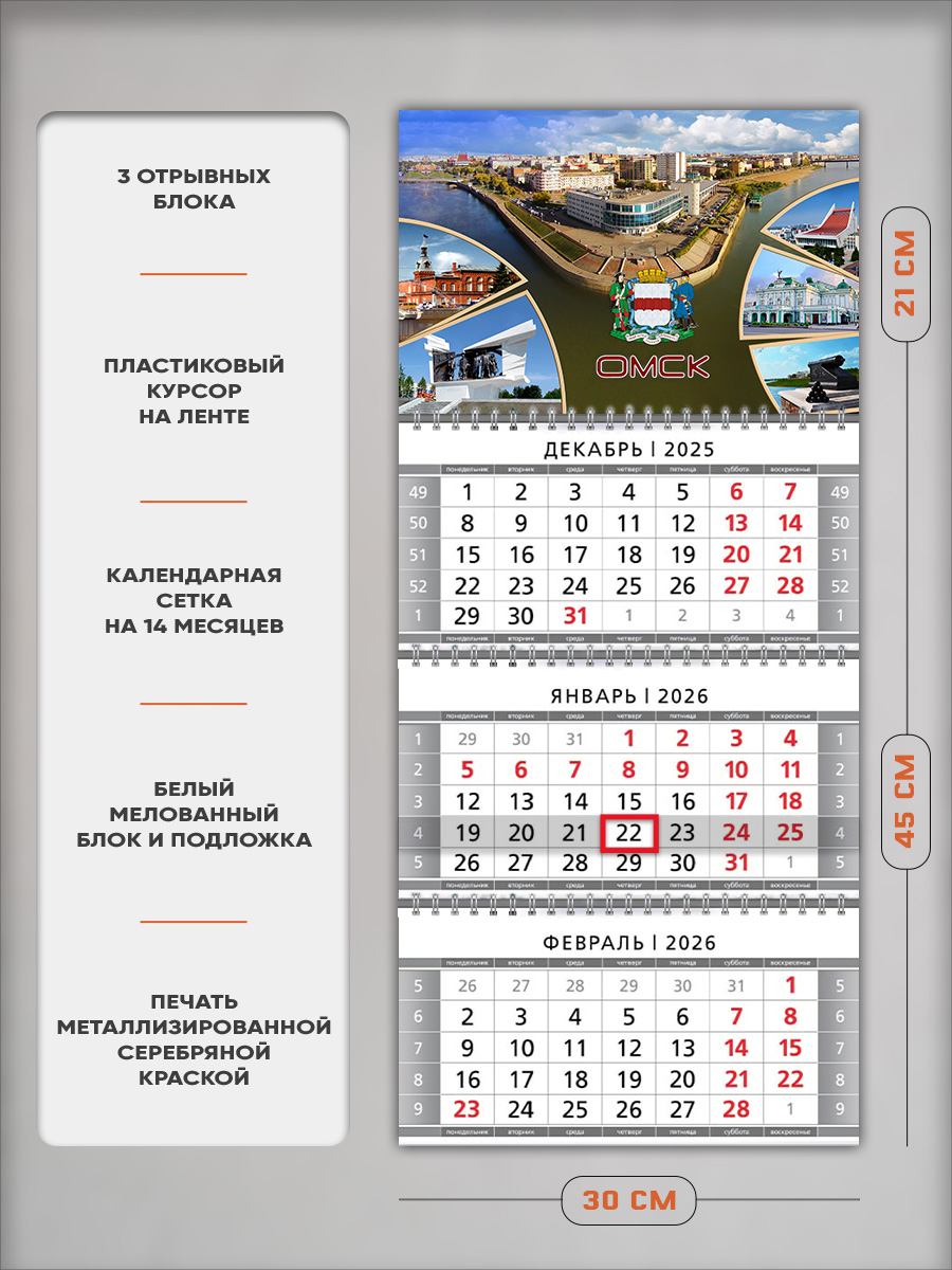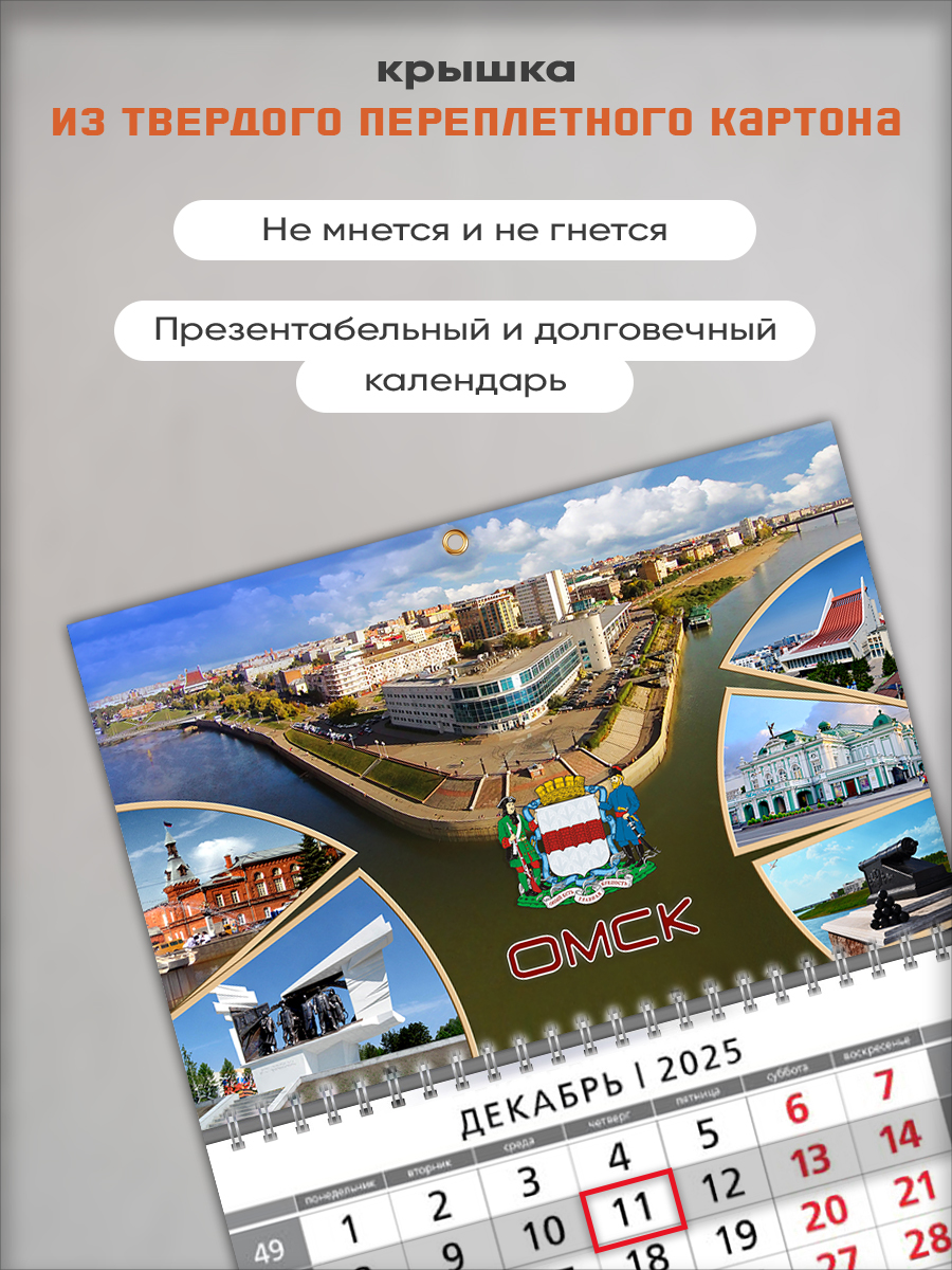 На этом изделии изображены виды Омска, напоминающие о сибирском городе. Это отличный подарок и взрослому, и ребенку, с помощью которого он сможет отслеживать важные и ответственные события.