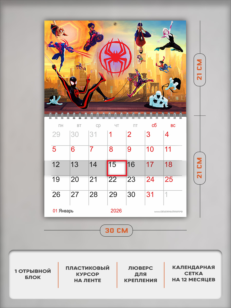 На этом изделии изображены персонажи мультфильма Spider-Man. Это отличный подарок и ребенку, и взрослому любителю анимации, с помощью которого он сможет отслеживать важные и ответственные события.