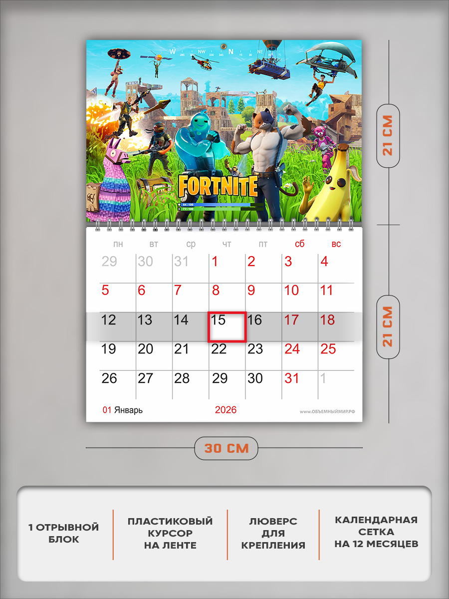 На этом изделии изображены персонажи компьютерной игры "Фортнайт". Это отличный подарок и ребенку, и взрослому игроману, с помощью которого он сможет отслеживать важные и ответственные события.