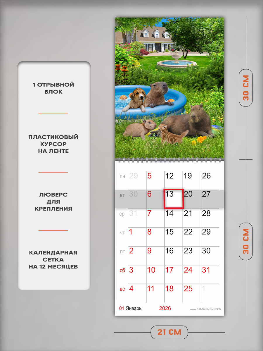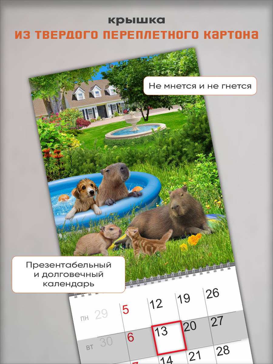На этом изделии изображены капибары - милые животные, ставшие популярным мемом. Это отличный подарок и ребенку, и взрослому любителю симпатичных зверьков, с помощью которого он сможет отслеживать важные и ответственные события.