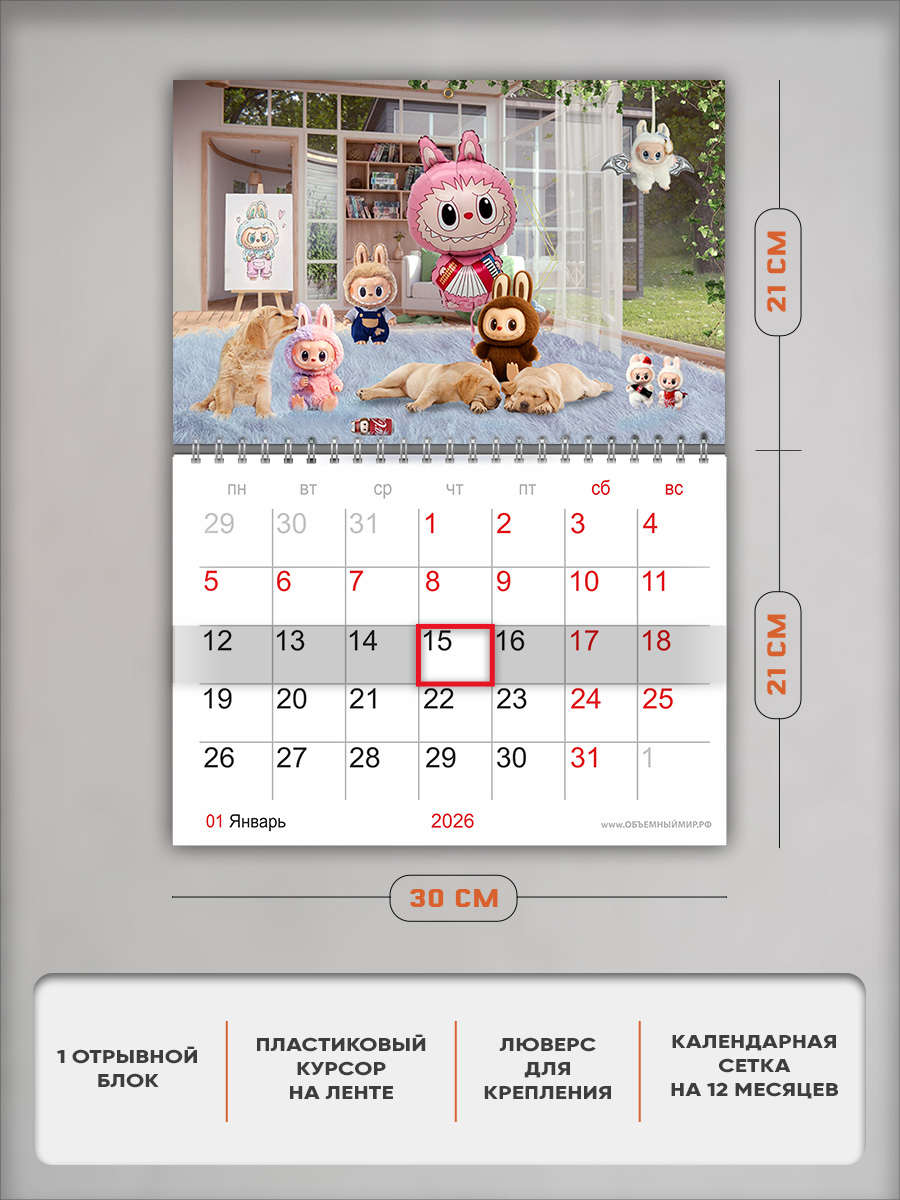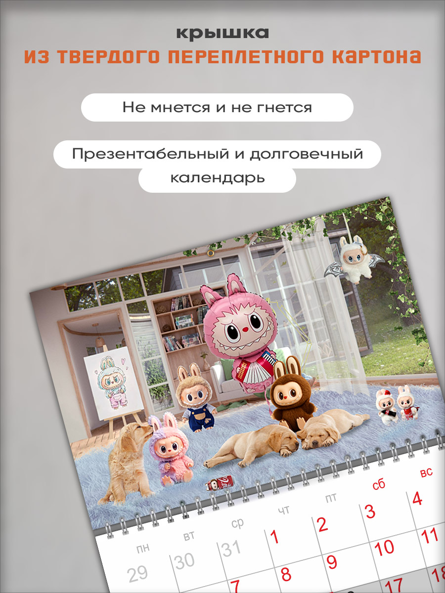 На этом изделии изображены Лабубу - милые монстры, ставшие популярным мемом. Это отличный подарок и ребенку, и взрослому любителю симпатичных существ, с помощью которого он сможет отслеживать важные и ответственные события.