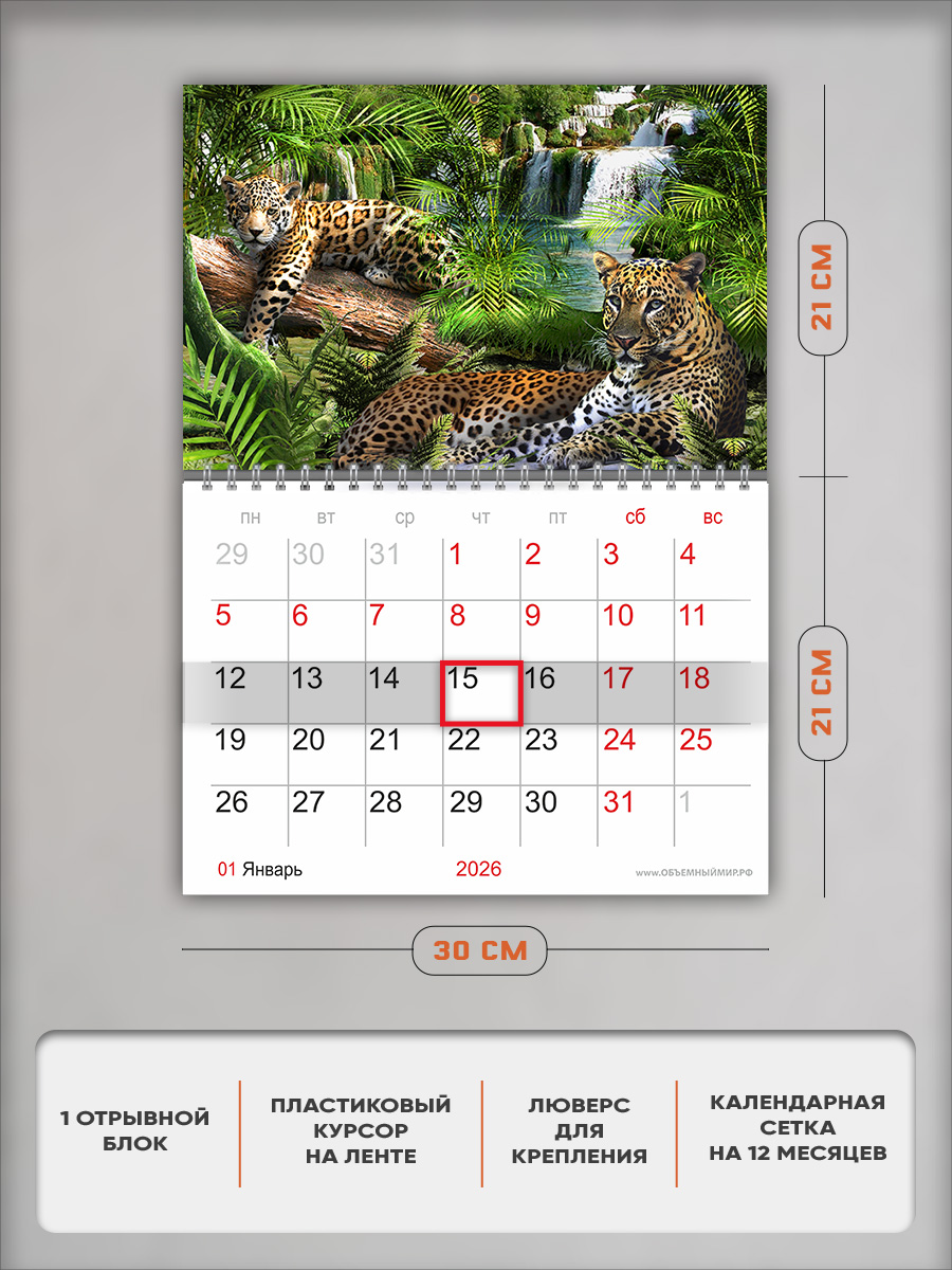 На этом изделии изображены леопарды - грациозные пятнистые хищники. Это отличный подарок и ребенку, и взрослому любителю дикой природы, с помощью которого он сможет отслеживать важные и ответственные события.