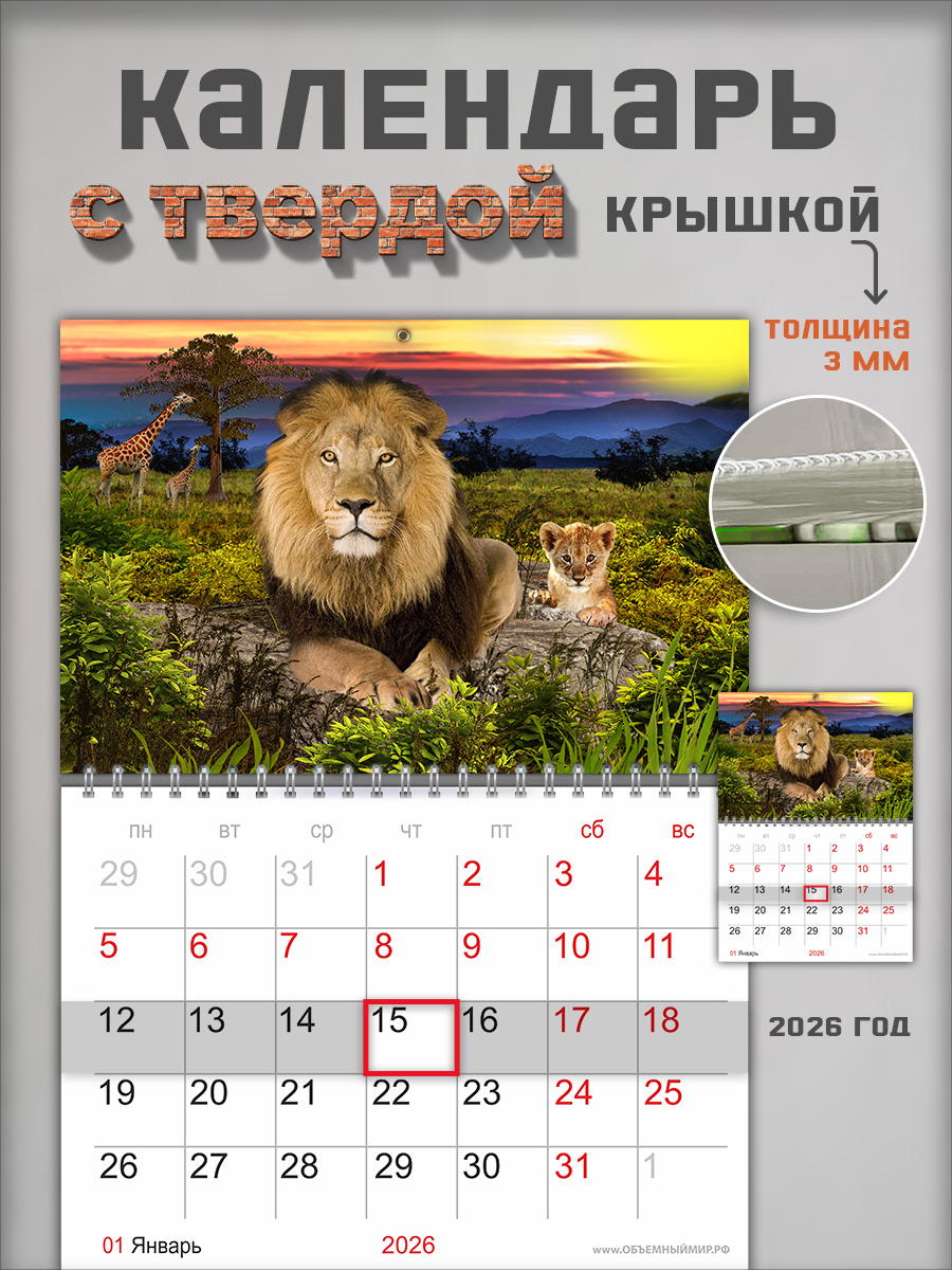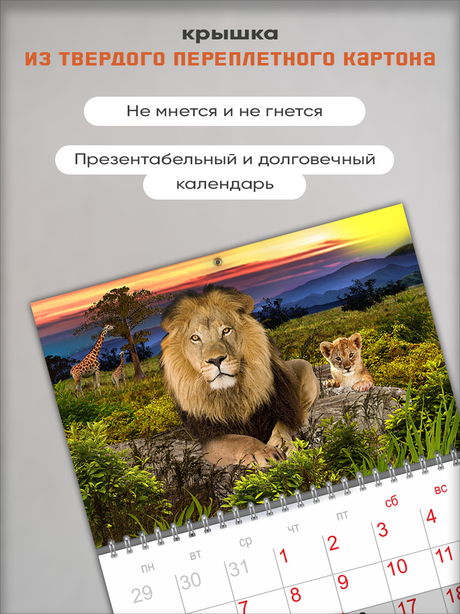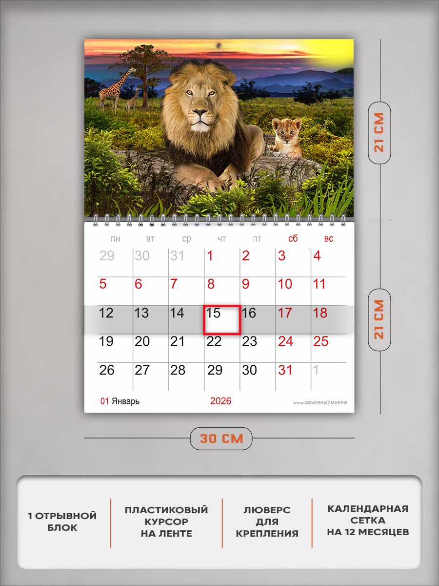 На этом изделии изображены львы - грациозные звери с роскошной гривой. Это отличный подарок и ребенку, и взрослому любителю животных, с помощью которого он сможет отслеживать важные и ответственные события.