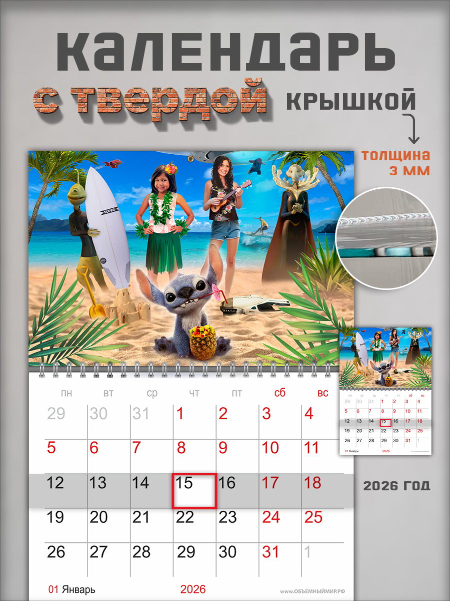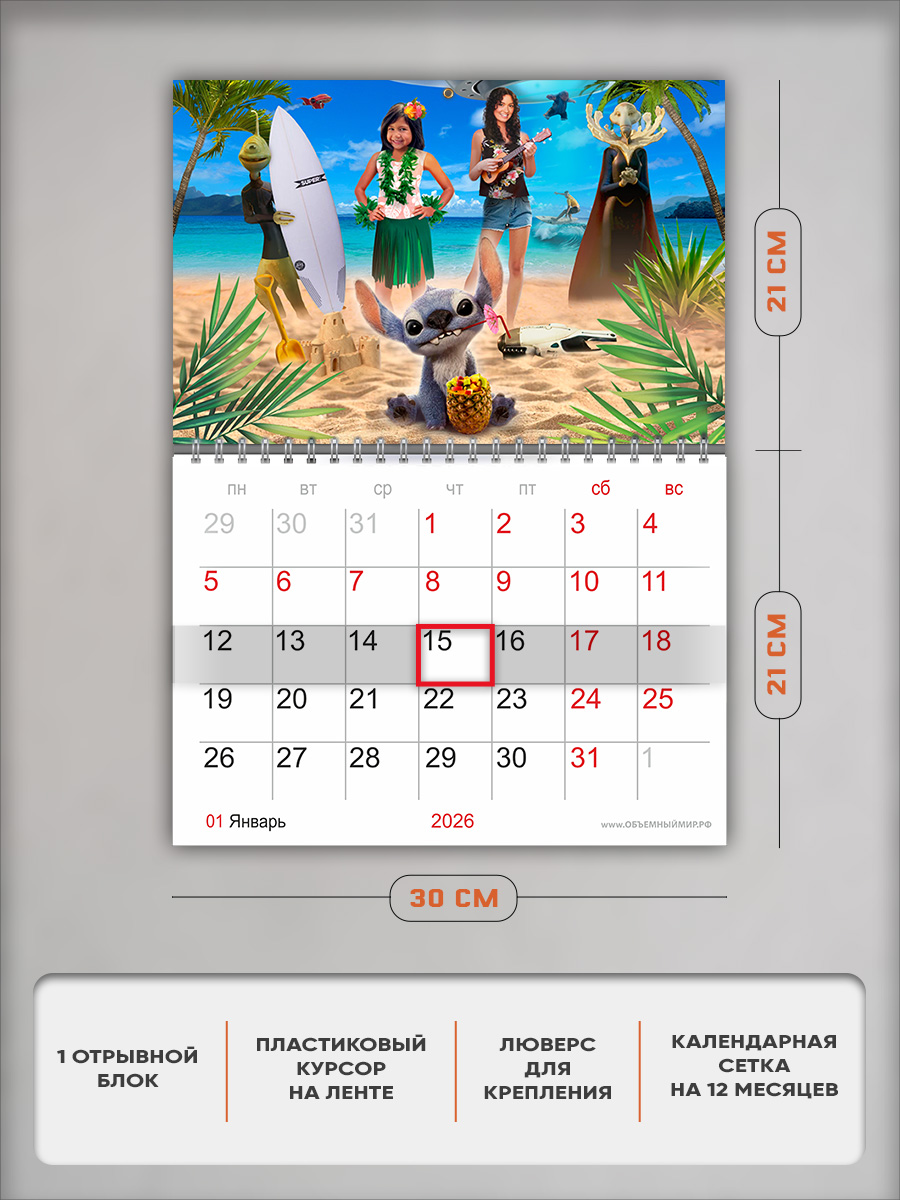 На этом изделии изображены персонажи диснеевского фильма "Лило и Стич" Это отличный подарок и ребенку, и взрослому любителю милых героев, с помощью которого он сможет отслеживать важные и ответственные события.
