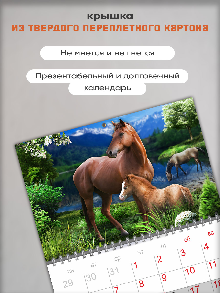 На этом изделии изображены лошади - грациозные животные, ставшие символом этого года. Это отличный подарок и ребенку, и взрослому любителю Восточного гороскопа, с помощью которого он сможет отслеживать важные и ответственные события.