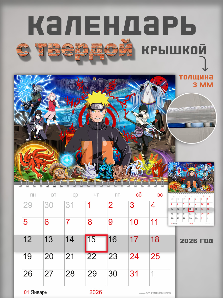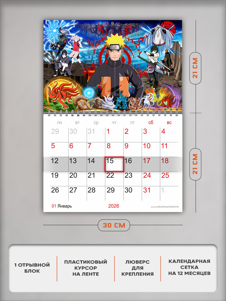На этом изделии изображены персонажи аниме Naruto. Это отличный подарок и ребенку, и взрослому любителю японской мультипликации, с помощью которого он сможет отслеживать важные и ответственные события.
