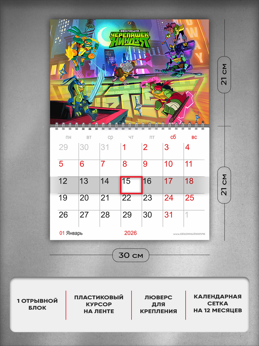 На этом изделии изображены персонажи мультсериала Teenage Mutant Ninja Turtles. Это отличный подарок ребенку, с помощью которого он сможет отслеживать важные и ответственные события, и взрослому любителю мультипликации.