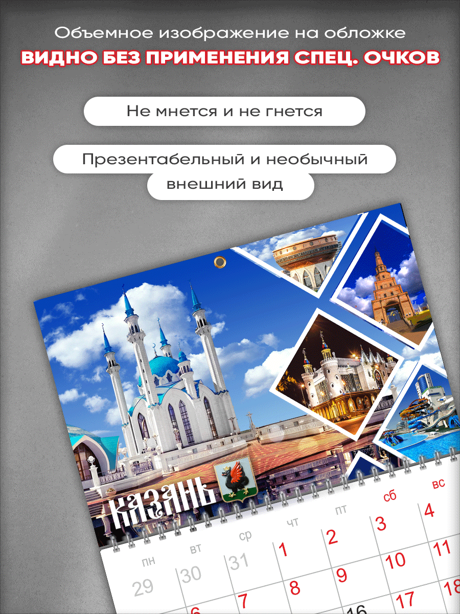 На этом изделии изображены достопримечательности Казани - столицы Татарстана. Это отличный подарок ребенку, с помощью которого он сможет отслеживать важные и ответственные события, и взрослому любителю путешествий по России.