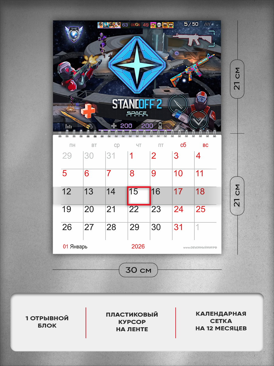 На этом изделии изображены персонажи компьютерной игры Standoff 2, популярной среди геймеров. Это отличный подарок ребенку, с помощью которого он сможет отслеживать важные и ответственные события.