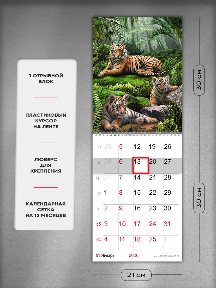 На этом изделии изображены тигрята - милые полосатые зверьки. Это отличный подарок ребенку, с помощью которого он сможет отслеживать важные и ответственные события, и взрослому любителю милых животных.
