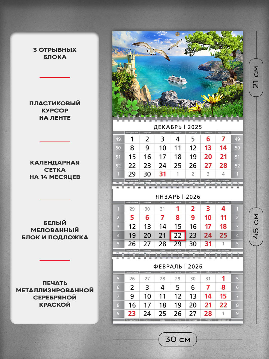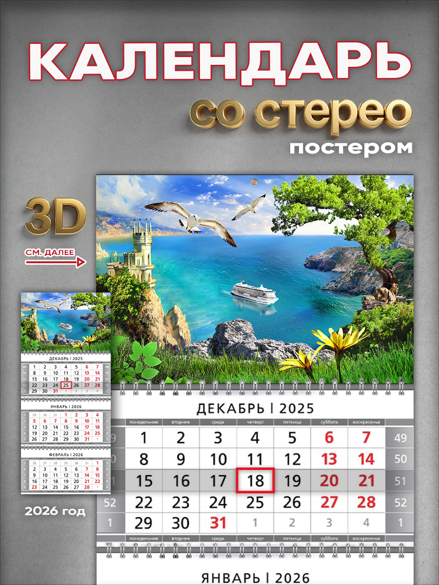 Настенный квартальный стереокалендарь c 3D-эффектом "Крым"