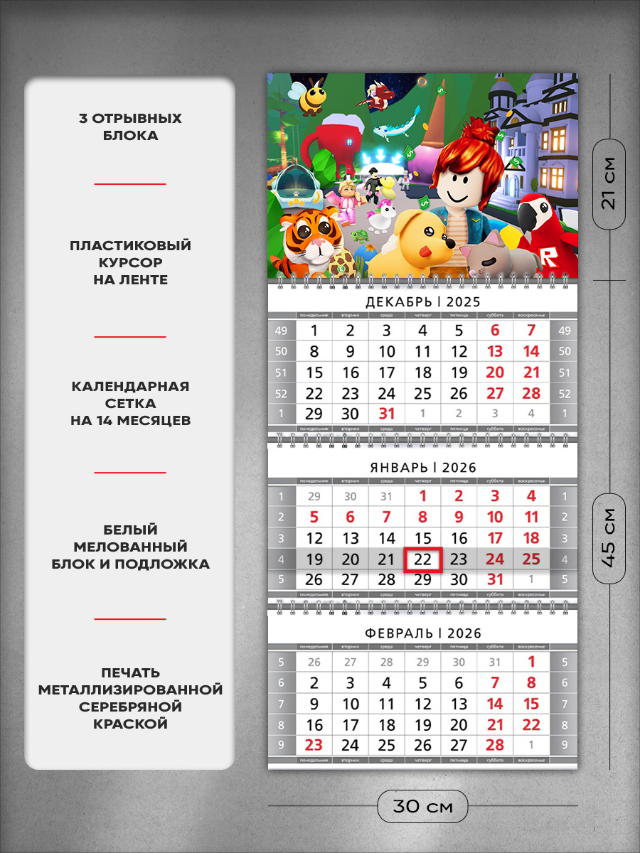 На этом изделии изображены персонажи компьютерной игры Roblox, популярные среди геймеров. Это отличный подарок и взрослому, и ребенку, с помощью которого он сможет отслеживать важные и ответственные события.