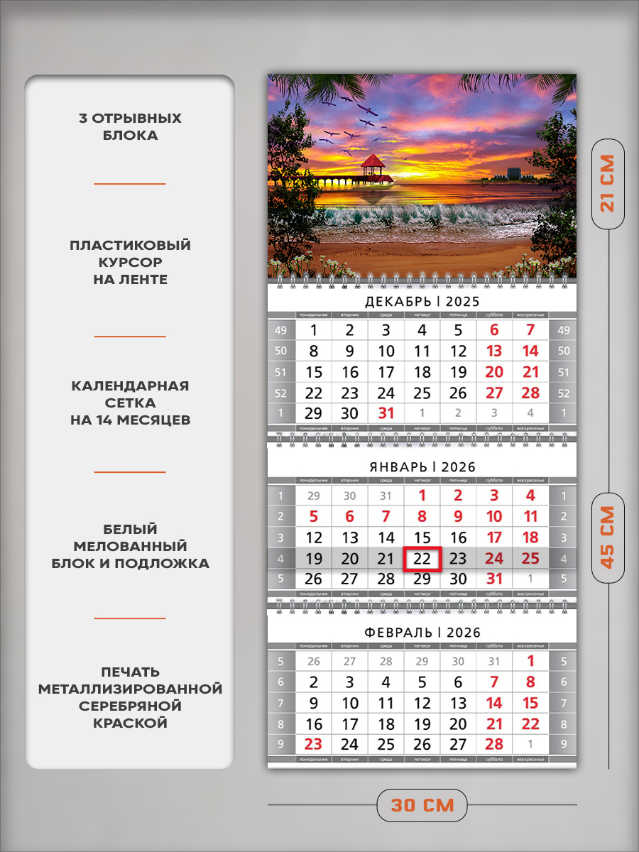 Стильный квартальный трехблочный календарь на 2026 год – ваш незаменимый помощник и элемент декора!