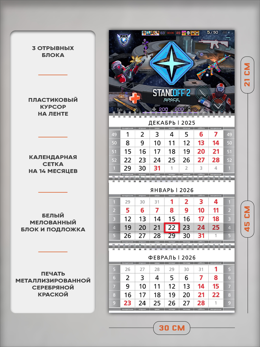 На этом изделии изображены персонажи компьютерной игры Standoff 2, популярные среди геймеров. Это отличный подарок как взрослому, так и ребенку, с помощью которого он сможет отслеживать важные и ответственные события.