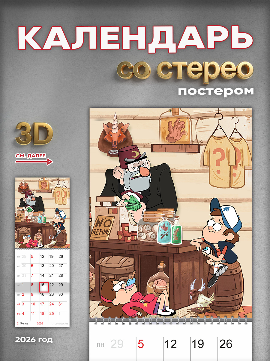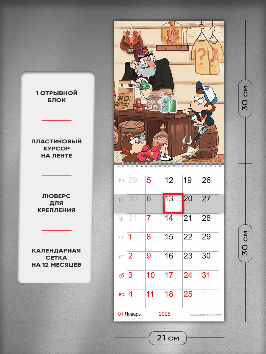 На этом изделии изображены персонажи диснеевского мультфильма Gravity Falls. Это отличный подарок ребенку, с помощью которого он сможет отслеживать важные и ответственные события, и взрослому любителю японской мультипликации