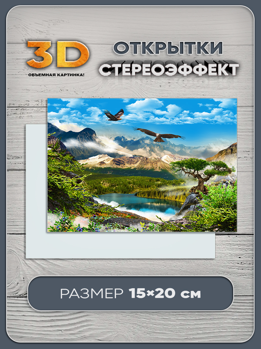 Добавьте изюминку в интерьер кухни, офиса или детской комнаты с нашим стереомагнитом! Этот стильный аксессуар, изображающий горный пейзаж (орлы, озеро, величественные вершины), не только украсит холодильник, магнитную доску или шкафчик, но и подарит моменты радости — изображение обладает 3D-эффектом, который видно без специальных очков.