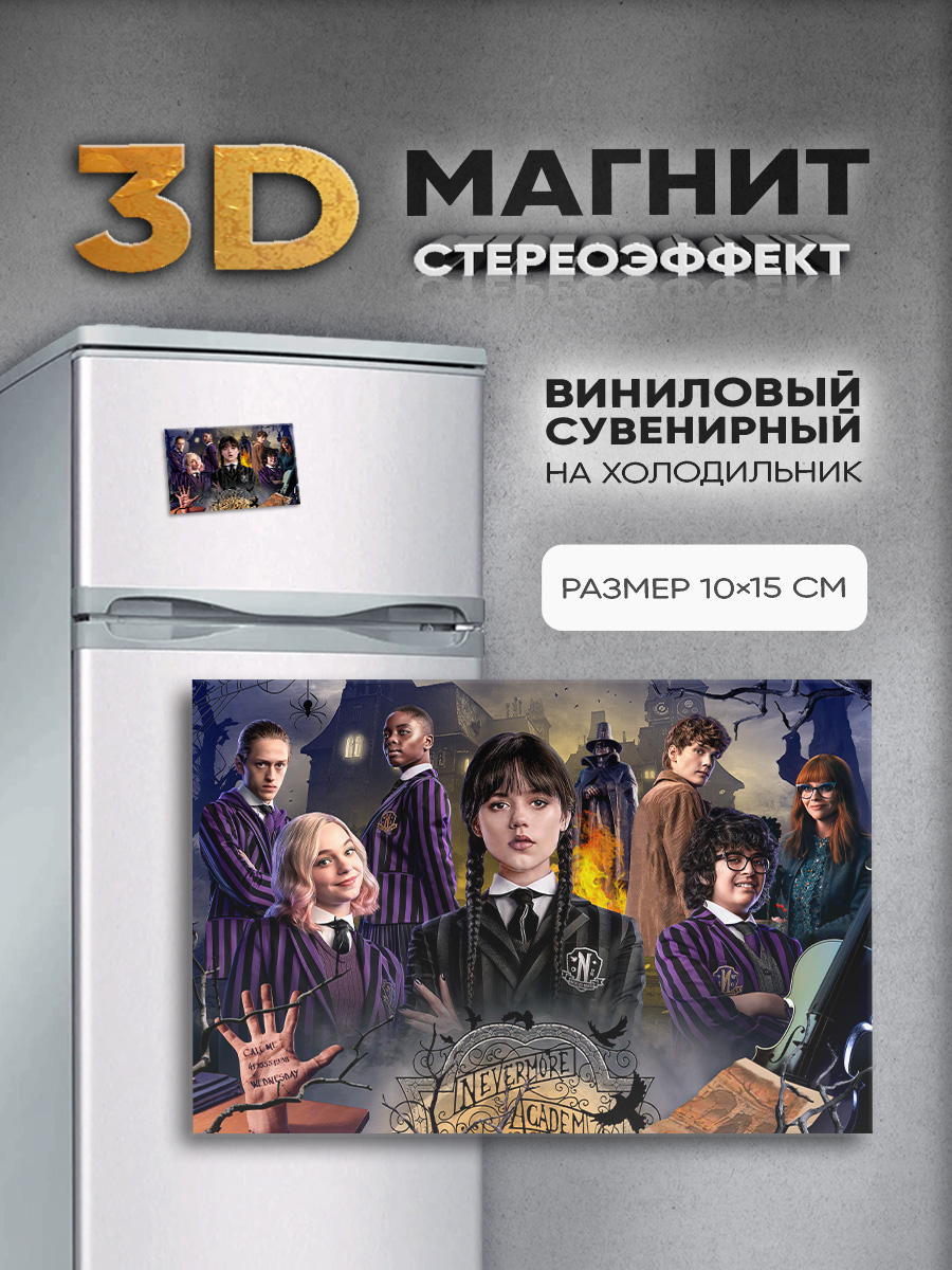 Добавьте изюминку в интерьер кухни, офиса или детской комнаты с нашим стереомагнитом! Этот стильный аксессуар, изображающий дочь Мартиши и Гомеса Аддамс, не только украсит холодильник, магнитную доску или шкафчик, но и подарит моменты радости — изображение обладает 3D-эффектом, который видно без специальных очков.